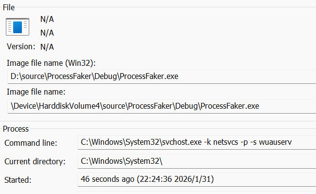 - 检查请求者: 发起请求的进程是否是 Windows 的可信二进制文件(如explorer.exe、taskmgr.exe等)?并且是否位于安全目录(如System32)?