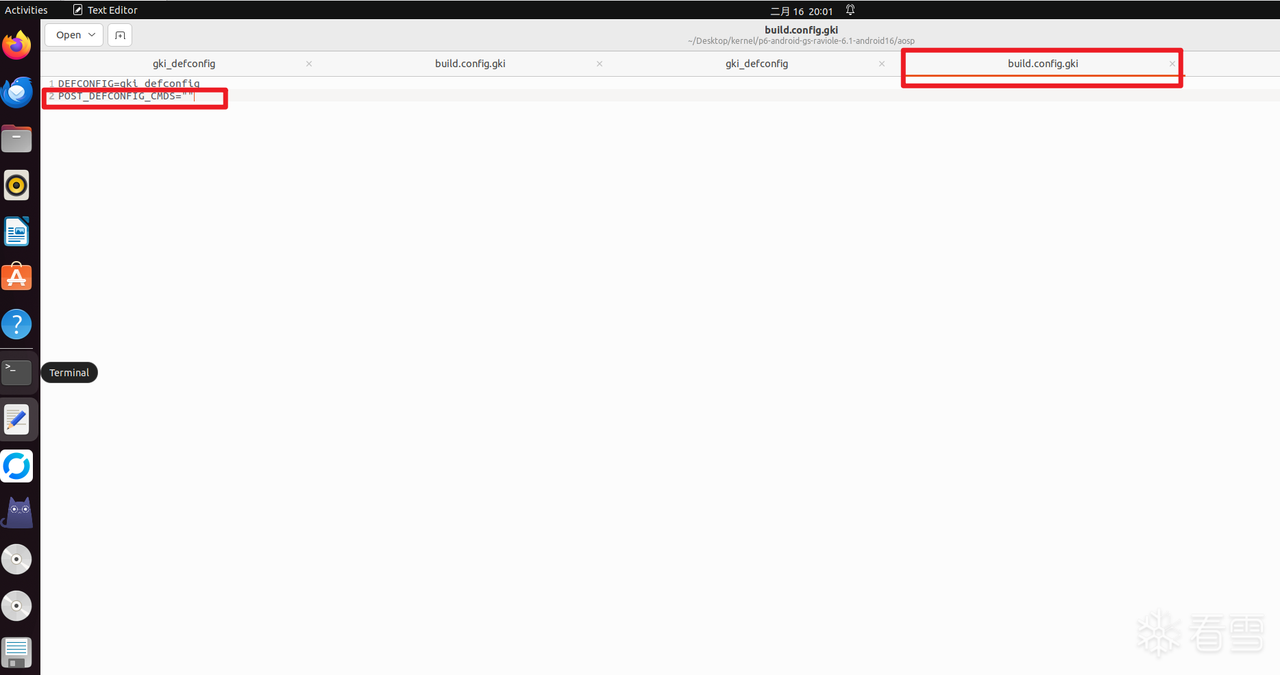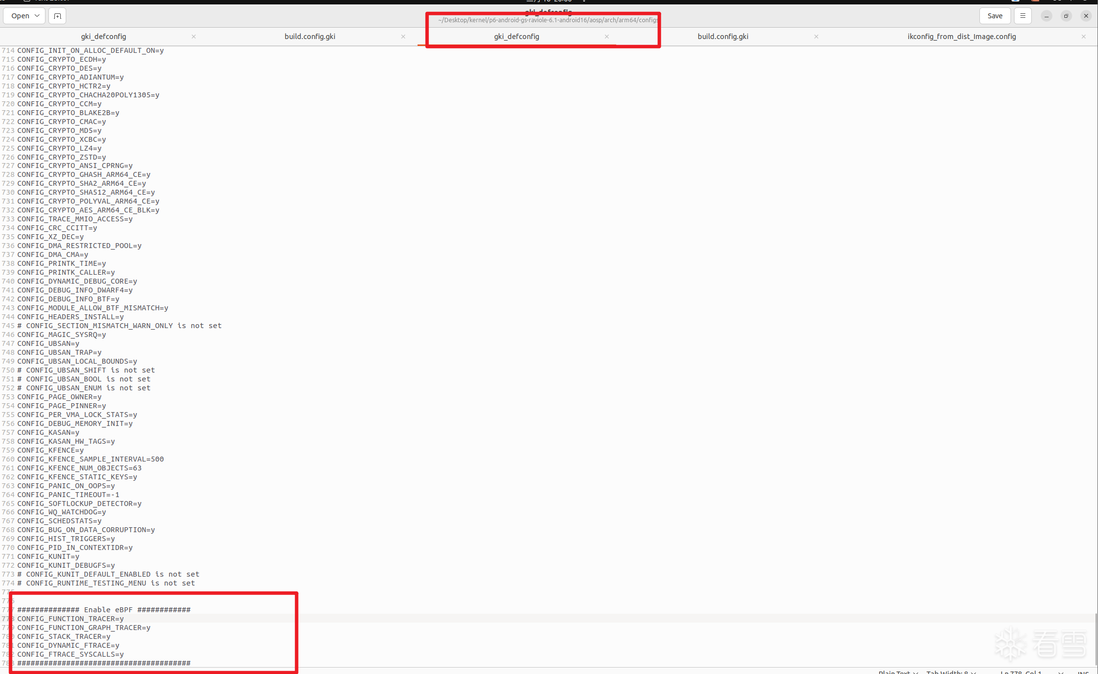 同步上述分支代码之后,打开/aosp/arch/arm64/configs 目录下的 gki_defconfig,添加如下配置选项,如下图所示: