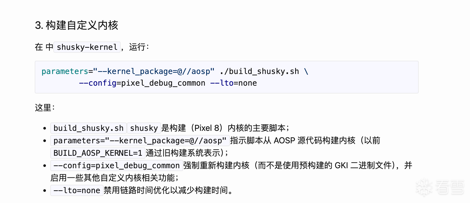 需要注意的是,该版本的也会有预制内核,而且并不向以前的5.10一样存放到本地(位于/prebuilts/boot-artifacts/kernel路径下),可以通过添加参数 BUILD_AOSP_KERNEL=1来强行编译本地内核,而是在编译的时候直接联网下载预制内核,这也就是我刷机中最卡手的点,所以如何让内核配置生效并强制生成本地内核就成了我最先要处理的问题。