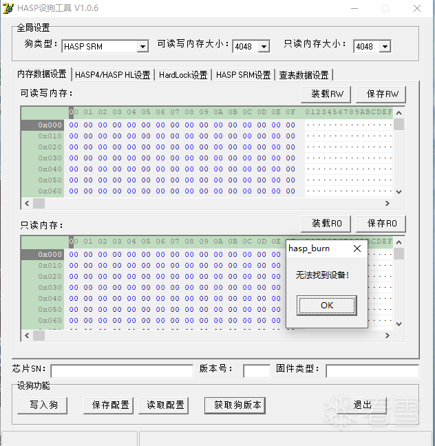 大佬们,这个HASP加密狗写狗工具无法识别空的加密狗,怎么弄?求助。提示无法找到设备