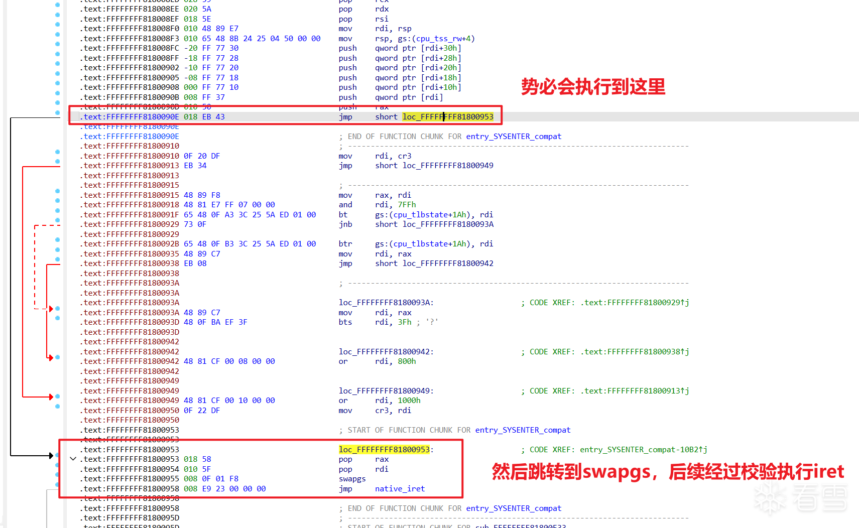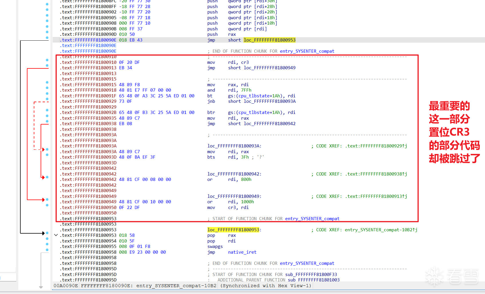 中间修改CR3的部分不是被跳过了吗??
