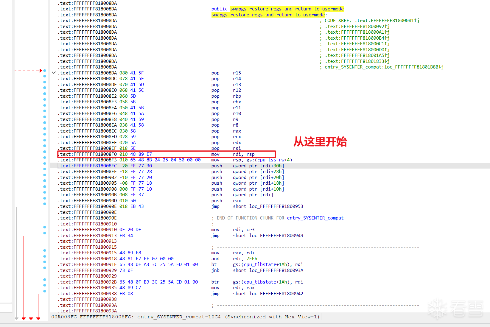 如上图所述,我追踪了“直接从mov rdi, rsp”的执行流: