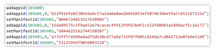 经进一步分析云控配置发现,被攻击的网站其中之一为cool666.top。进一步分析其站点结构后,发现存在一个固定下载模板地址a58K9s2c8@1M7s2y4Q4x3@1q4Q4x3V1k6Q4x3V1k6Y4j5h3#2W2i4K6u0W2j5$3!0G2L8o6j5$3y4W2)9J5k6i4c8G2M7q4)9J5c8V1N6S2L8h3g2x3K9i4y4@1i4K6u0r3{APPID}.zip,基于该模板,将《泰拉瑞亚》的Steam APPID(105600)代入后,可拼接得到对应下载地址 bcaK9s2c8@1M7s2y4Q4x3@1q4Q4x3V1k6Q4x3V1k6Y4j5h3#2W2i4K6u0W2j5$3!0G2L8o6j5$3y4W2)9J5k6i4c8G2M7q4)9J5c8V1N6S2L8h3g2x3K9i4y4@1i4K6u0r3x3e0l9#2y4U0l9H3i4K6u0W2P5X3W2H3,对该压缩包进行分析后发现其中包含Lua脚本。结合以往对Steam入库工具的分析经验,可以判断该脚本即为用于“入库”操作的Lua脚本。由此可进一步认定,被攻击的网站本质上是一个提供Steam入库服务的网站。