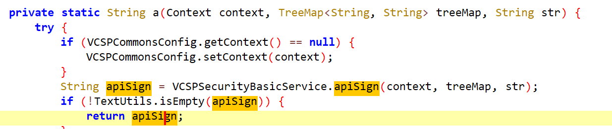 6 return + .apiSign(context, treeMap, str) 实际函数调用