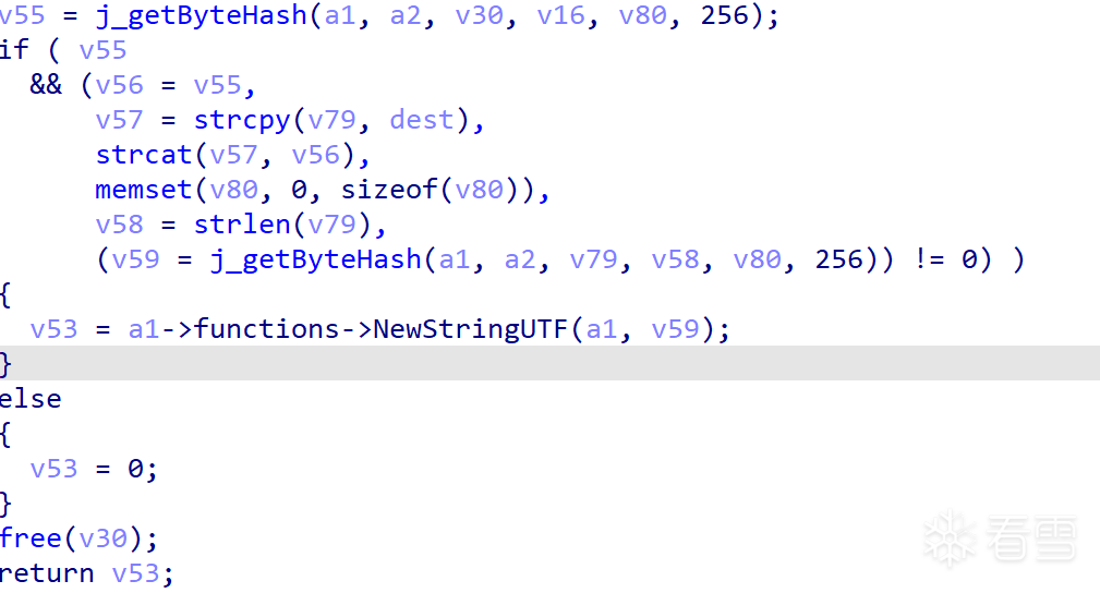 IDA里定位到对应的native函数,F5转成伪代码,看到核心逻辑:
