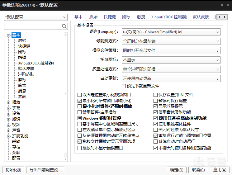 - 播放器:PotPlayer(默认)、MPC-BE、MPC-HC