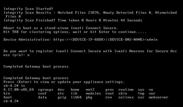 /home/bin/dsconfig.pl是控制台界面执行时需要调用的脚本文件,替换后启动虚拟机等待控制台界面超时后按“回车”,即可获取底层Shell。