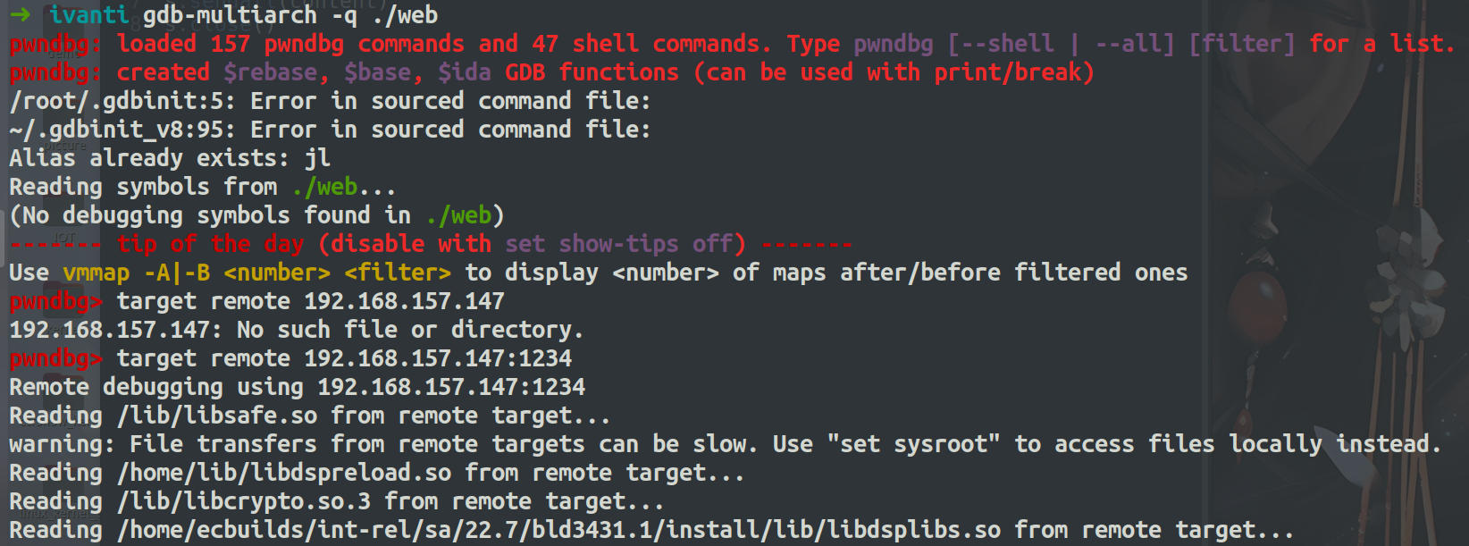 s.close()执行完上面两个脚本就能看到gdbserver已经上传到ivanti的/tmp目录下了
