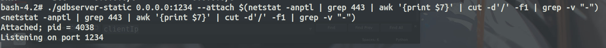 记得赋执行权限,然后就能用/tmp/gdbserver-static执行gdb服务了,后面也就可以远程调试