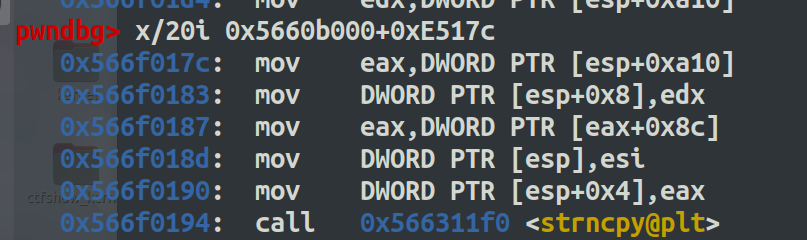然后经过值的传递,最后v23 = *(_DWORD *)(a1 + 144) + 1;,紧接着下面的 strncpy 会进行拷贝,因此这里会触发栈溢出,由于是 32 位系统地址的特殊性(很少会发生0截断),使得我们可以几乎随意地设置 gadget。