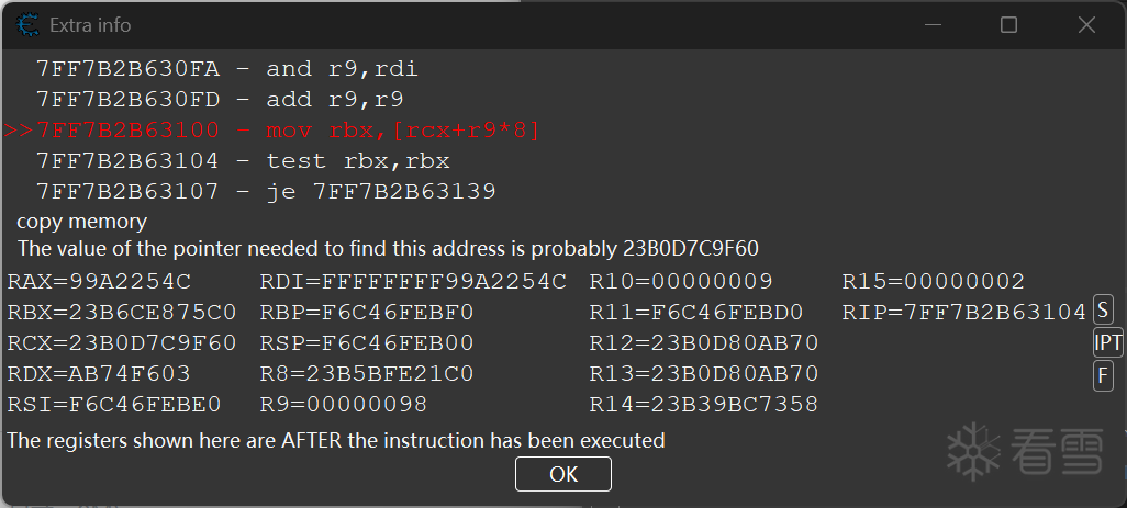 此处的 rax 很容发现是一个基址相关的多级指针,而这个 rbx 每次打开游戏都不一样,所以只能跟进去看一下