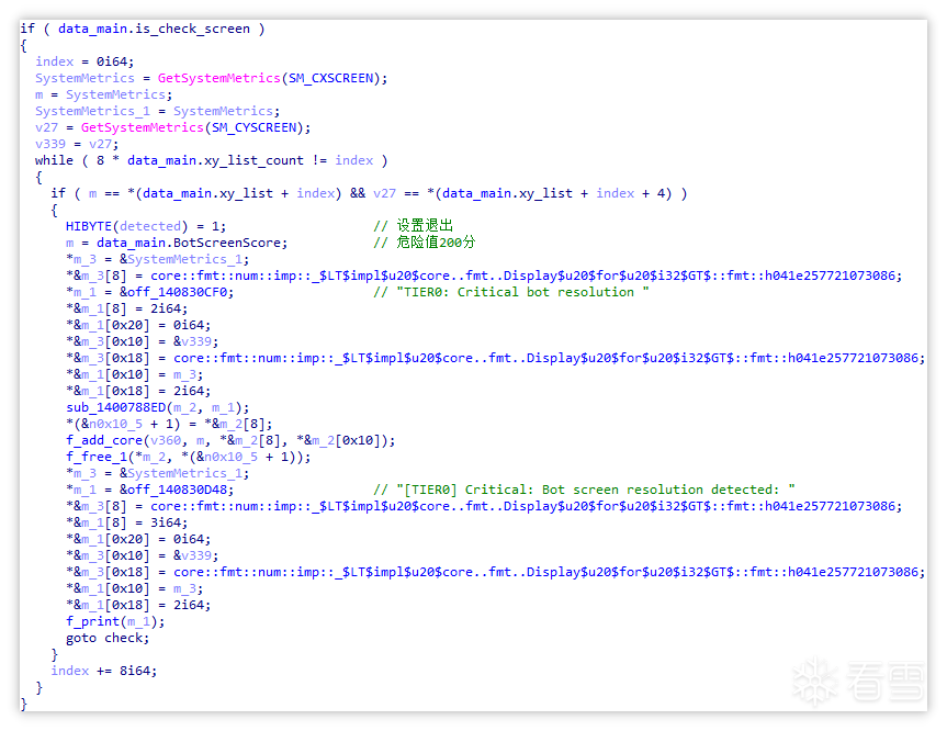 通过GetSystemMetrics检查是否与上述非常规屏幕分辨率一致,若一致,则会退出进程。