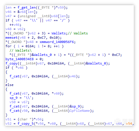 加密货币钱包:在程序中会通过Wallets\字符串与下发的具体加密货币钱包路径进行组合并将其文件夹打包上传。