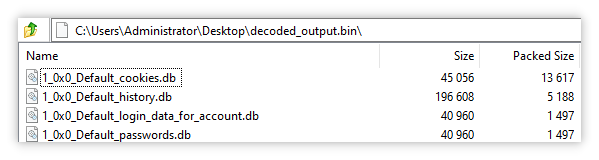 还会窃取Cookies、历史记录、密码等数据,下图为服务器接收到的压缩包,可以看到其中包含cookies、history、passwords等敏感数据组成的数据库文件。