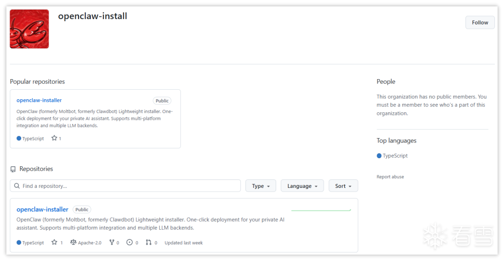 此前已出现过恶意项目openclaw-installer,当时其所属组织名为install-openclaw,目前该组织已被封禁,无法访问。随后,又出现了一个新的组织openclaw-installer,其下项目名称同样为openclaw-installer。其Releases中提供的内容与此前一致,本质上仍属于下载器。