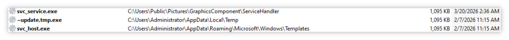 文件夹名称通常由上述两组字符串随机拼接形成,例如USBManager、GraphicsDriver、DeviceMonitor、GraphicsComponent等。随后,样本还会在该子文件夹内创建一个同样采用该随机命名逻辑生成的 .7z文件。也就是说,最终的目录名和文件名均具有较强的伪装性,外观上类似正常的系统组件、驱动模块或服务文件。