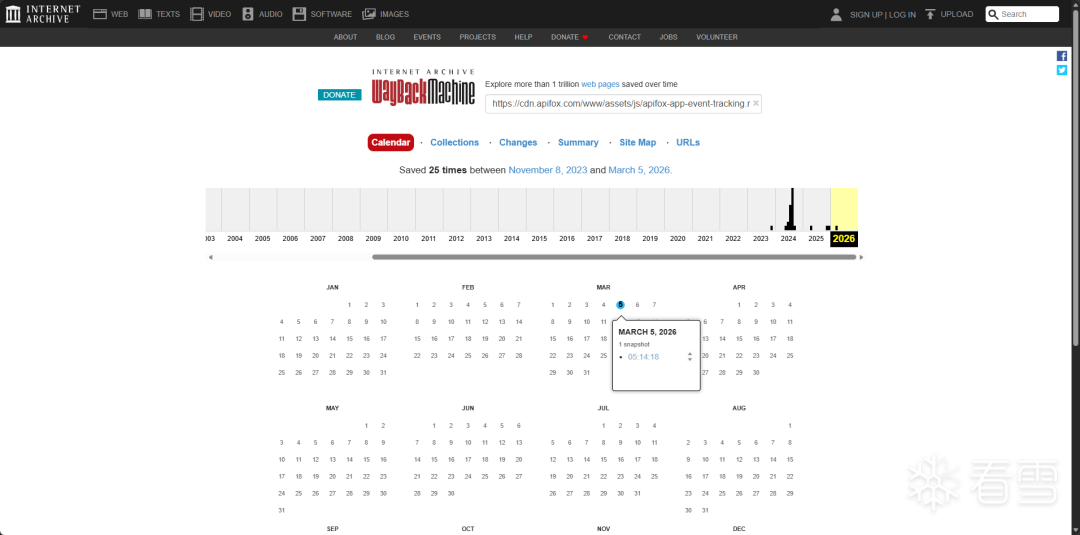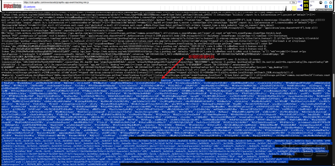 通过Wayback Machine可以搜索到该js资源在3月5号的存档: