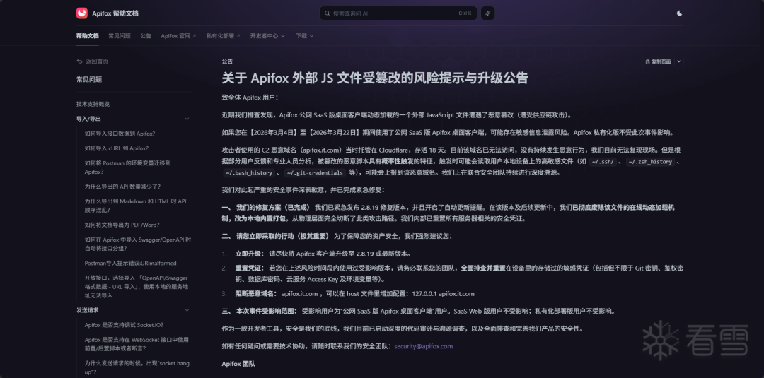 图:Apifox官方公告