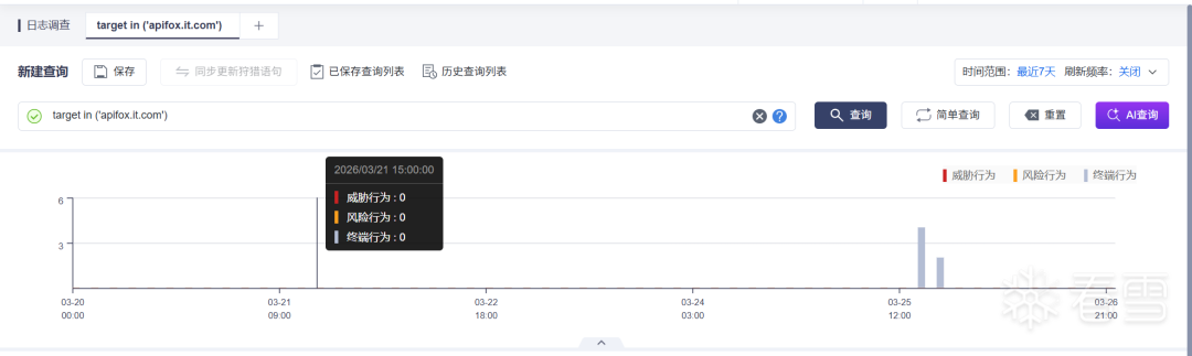OneSEC用户可查询历史日志中是否存在IOC域名反连来确定失陷范围: