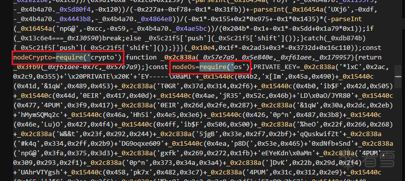 而该恶意代码首先会加载node.js的crypto,os模块