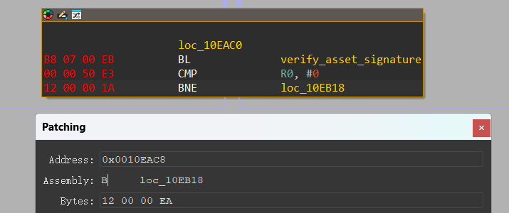 0x10EAC8 12 00 00 1A -> 12 00 00 EA