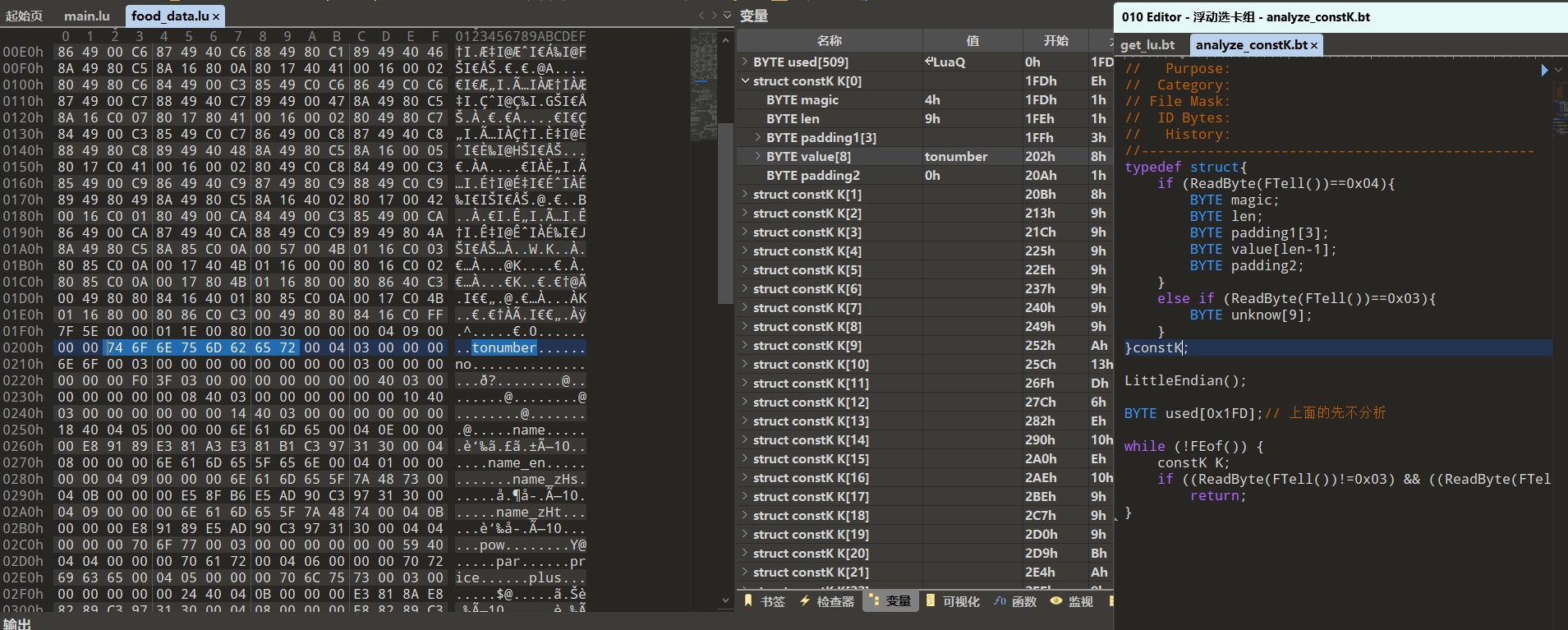 接下来寻找常量表的存储位置,依旧是手搓个010的模板解析下
