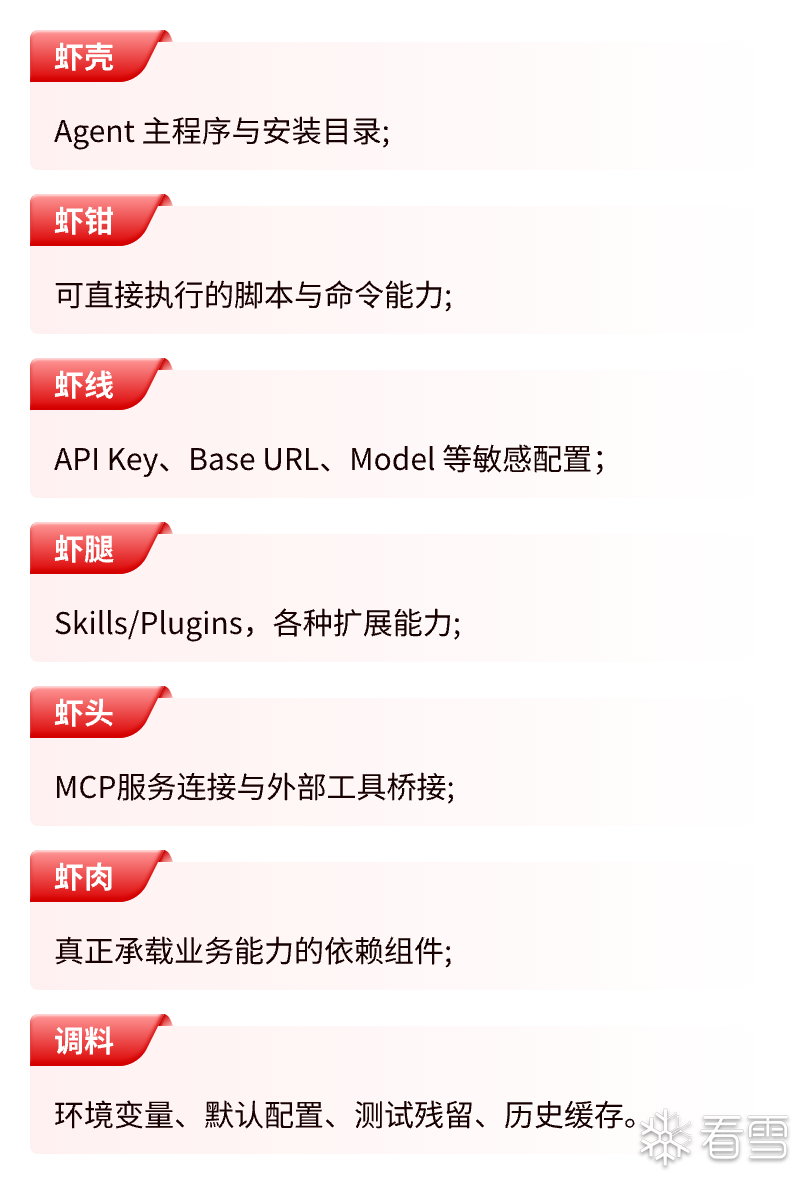 看起来主体不大,但真拆开以后,钳子、壳、腿、触须、内脏一层一层,结构非常复杂。你以为在看一个 Agent,实际上面对的是一整个“能力系统”。
