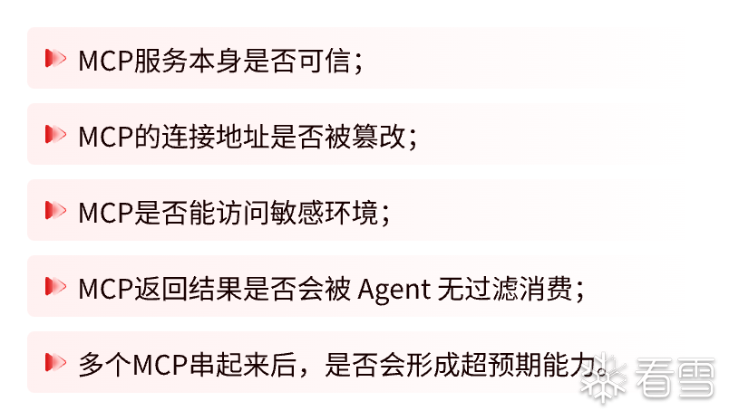 一旦一个 Agent 能接入这些 MCP,它的能力边界就不再由模型本身决定,而是由外部连接能力总和决定。此时真正的风险点包括: