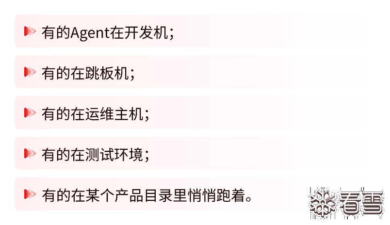 第一层永远不是漏洞,而是资产可见性。如果连主机上有哪些 Agent 都不知道,就谈不上治理。