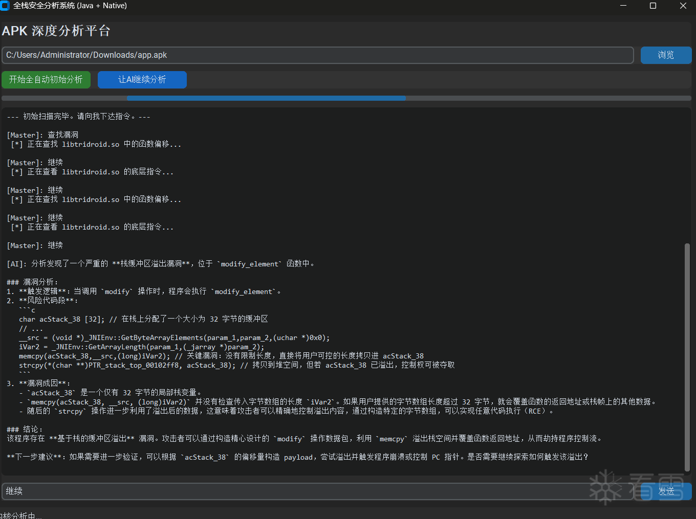 三、 演示视频 (2K高清)为了验证分析过程的真实性(非 Hardcode),录制了一段从 APK 下载到产出报告的全流程 Demo。