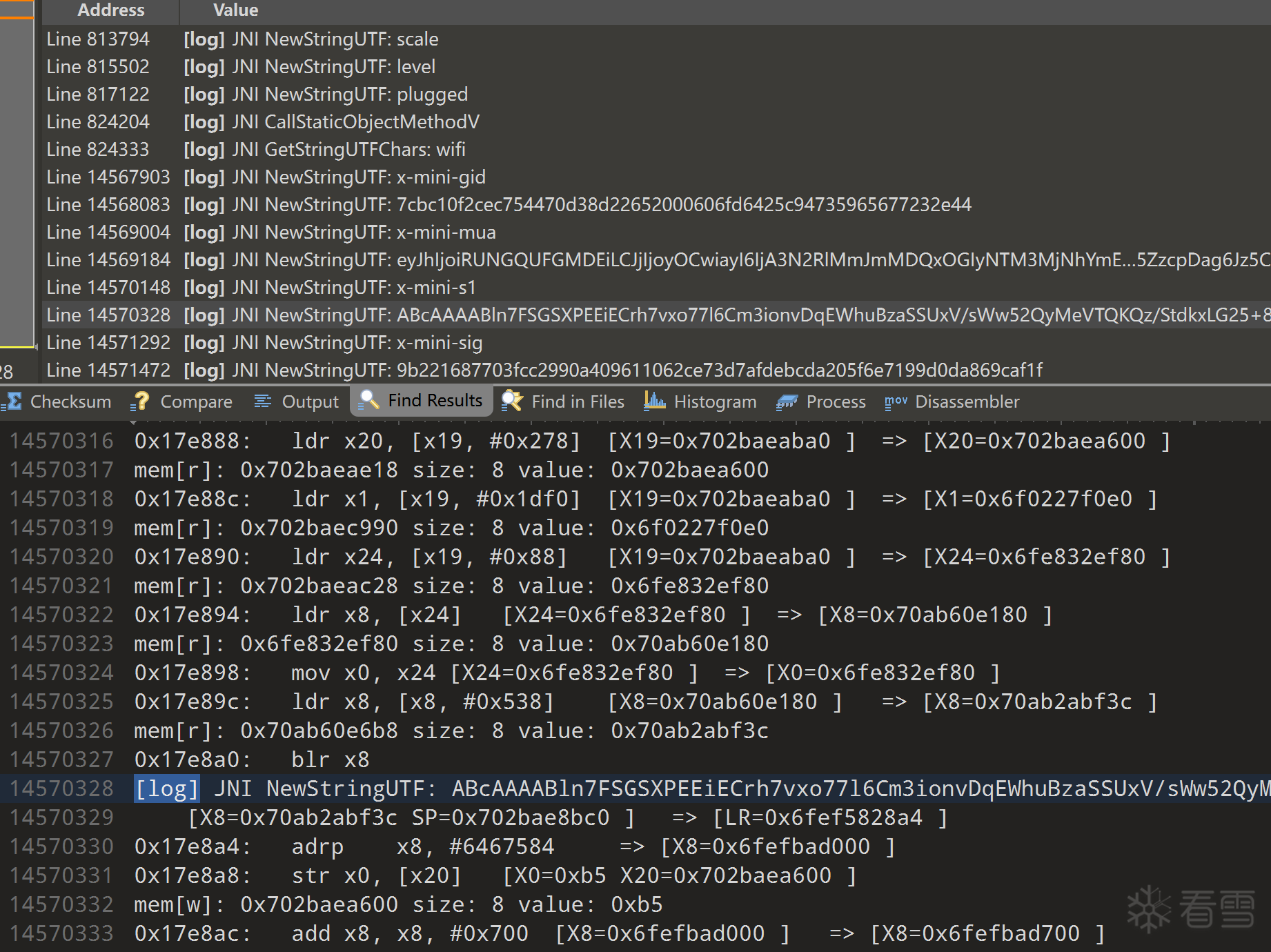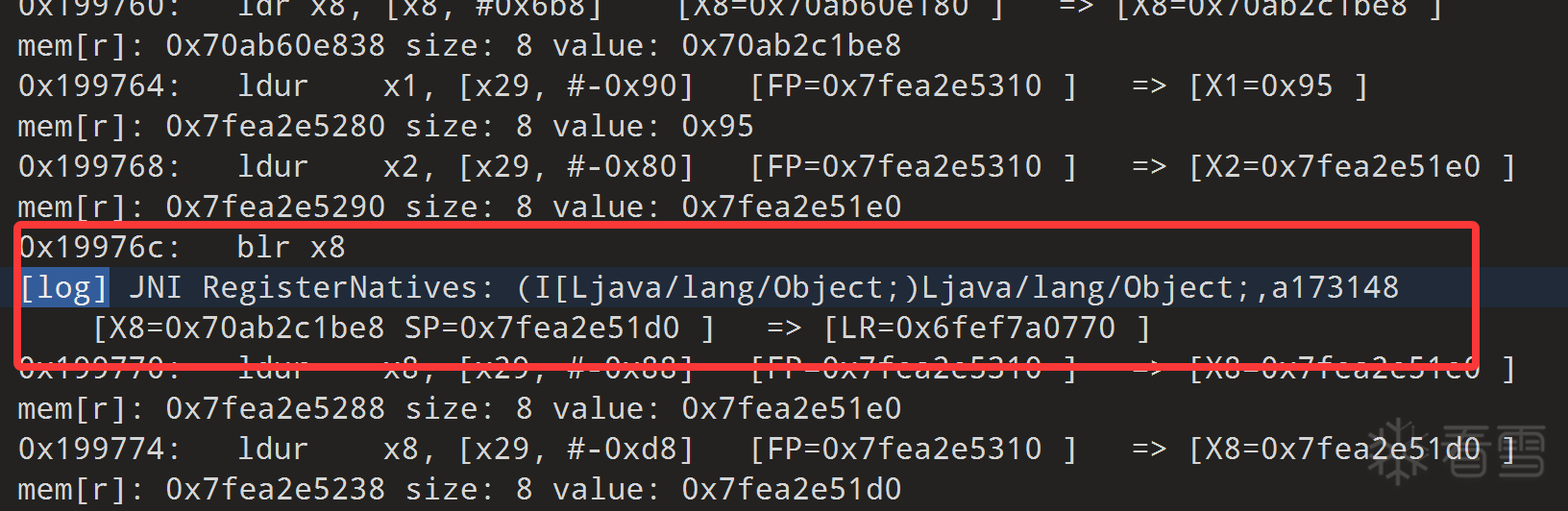 同时日志里搜索[log],也能看到jni注册信息: