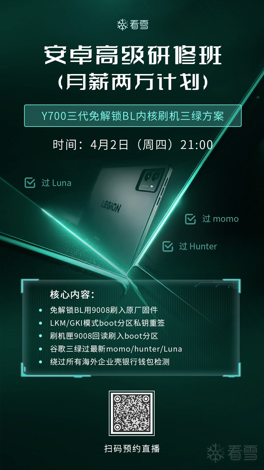 本周四21:00,直播拆解Y700免解锁刷机全流程