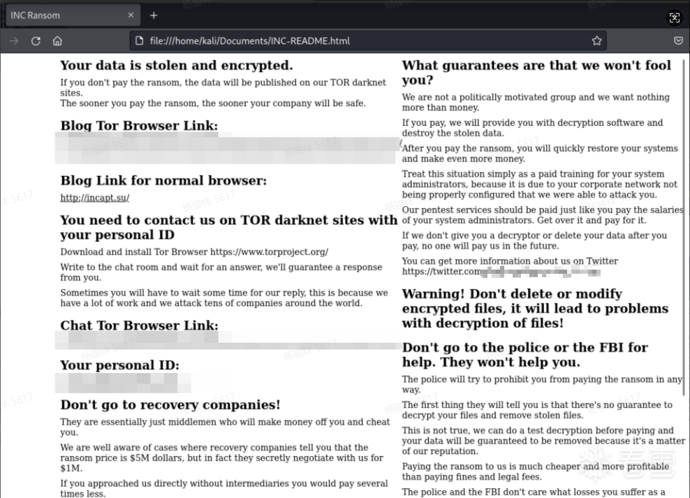 | TOP 5 | Incransom | 起步即成熟:初期即展示出极高的运营效率,推测为经验丰富的团队重组。 心理战术:常将支付赎金美化为“挽回声誉”的服务,专注于医疗、教育、政府等高敏感行业。 |