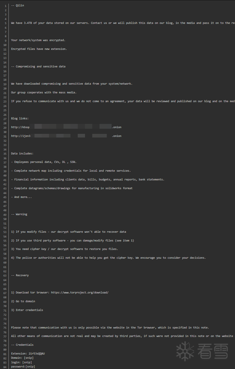 Qilin(又名 Agenda)是一个RaaS勒索软件组织,于2022年7月出现,2022 年 9 月更名为“Qilin”并以勒索软件即服务(RaaS)模式运营。麒麟勒索软件主要针对 Windows 系统,但已发现针对 VMware ESXi 服务器的 Linux 变种。该组织在对领先的病理服务提供商Synnovis进行攻击期间,因其5000万美元的赎金要求而迅速声名鹊起,导致伦敦主要NHS医院的服务中断。Qilin最初是Agenda勒索软件(用Go开发)的一个分支,现已演变为一个更强大的、基于Rust的变种,融合了恶意软件构建和防御规避的技术。