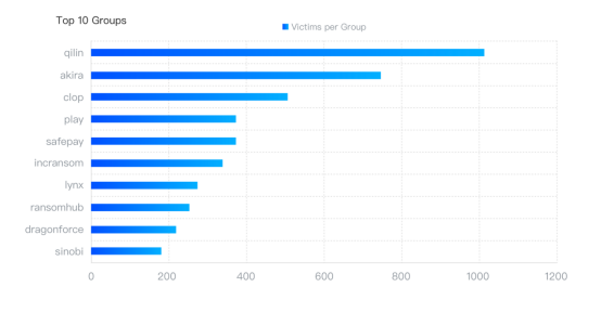 - Qilin (麒麟) 家族表现出极强的攻击性,以全年累计 1,017 名受害者的记录位居全球榜首。