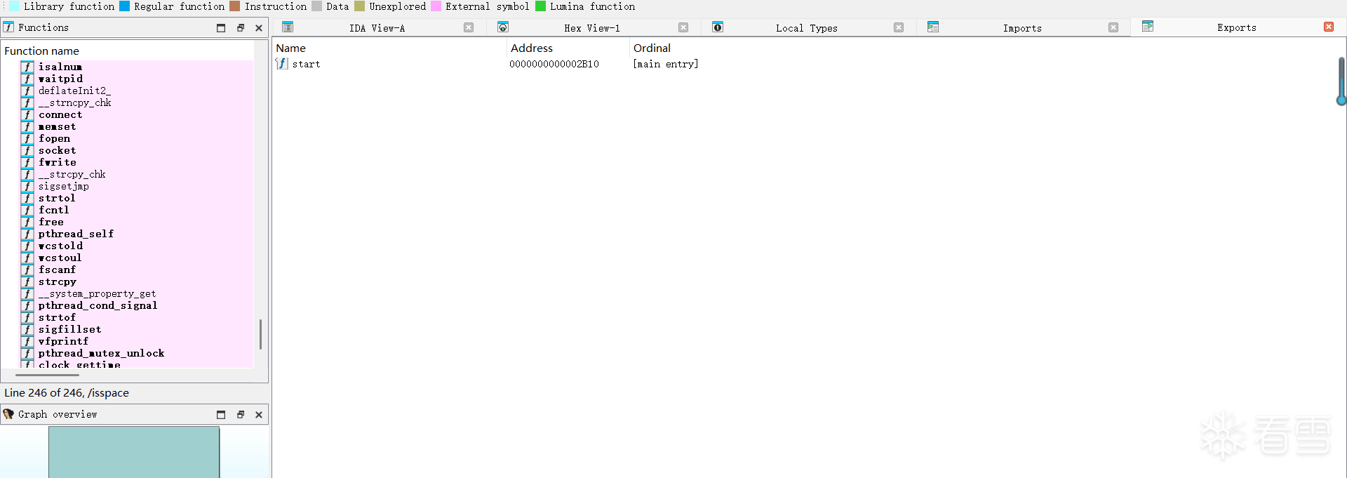 修复后用 IDA 打开,发现该 SO 导出表仅有一个 start 函数,完全没有 JNI_OnLoad。这与我之前 Frida 能正常 Hook 到 JNI_OnLoad 的现象完全矛盾,也让我意识到:我拿到的地址根本不属于这个 SO。