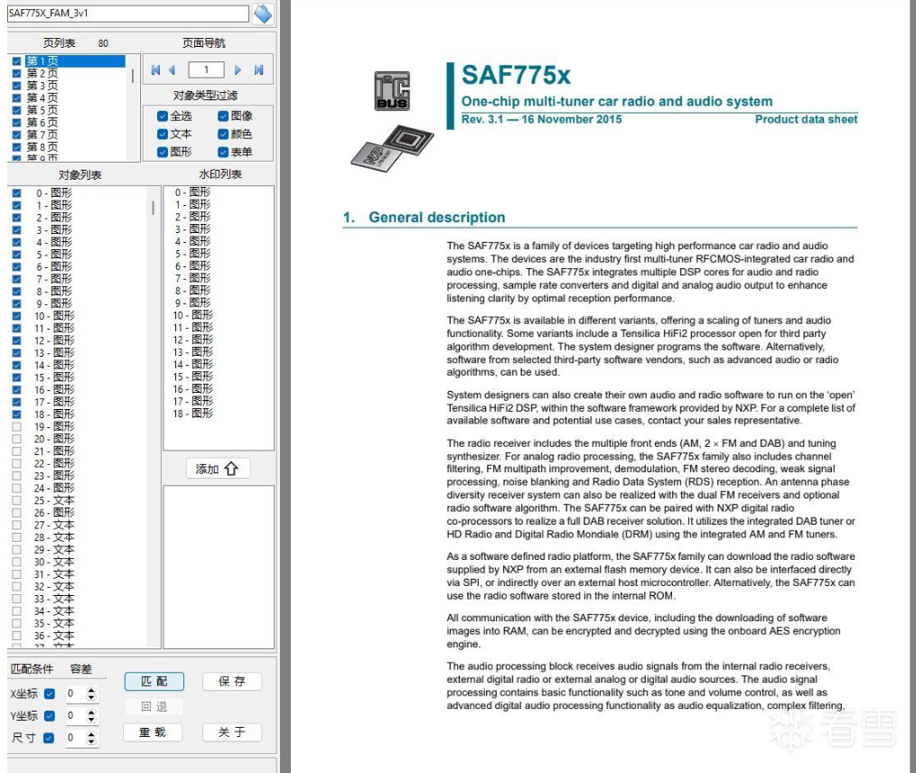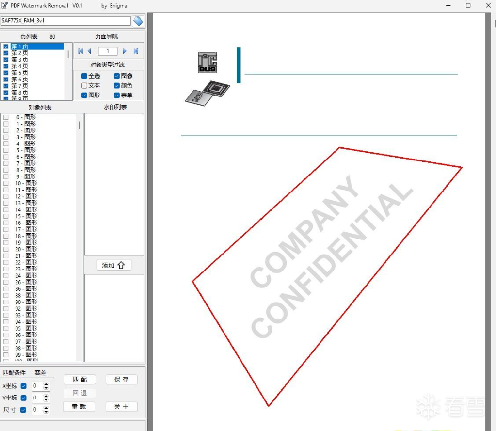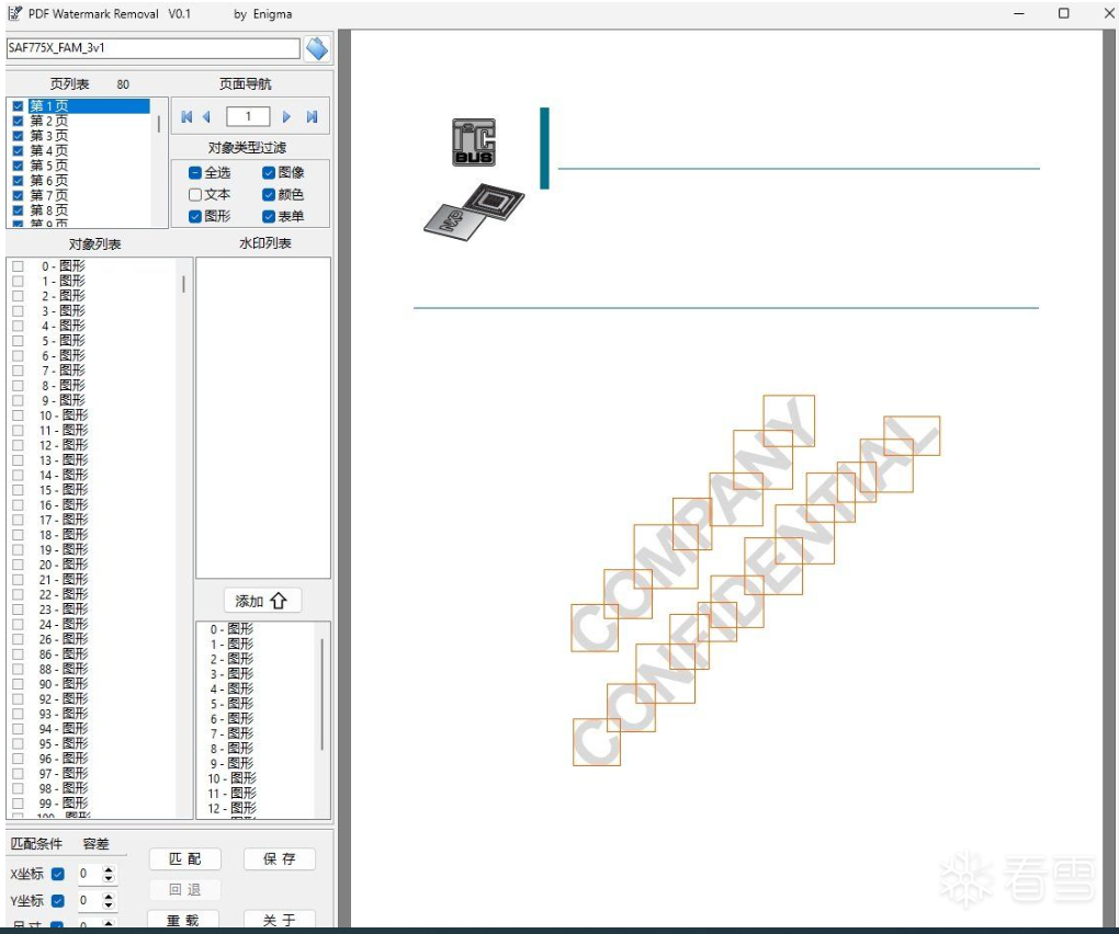 每页符合坐标及尺寸的对象都被添加到水印列表