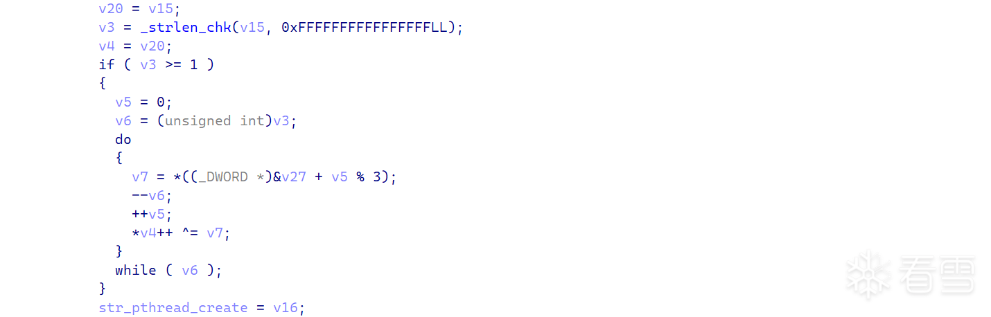 大致的特征就是这种:先计算长度,然后异或解密这种。这种特征貌似不只是在这个so当中出现过,之前分析壳的时候好像也见过类似的。解决办法: 目前针对这种解密字符串没想到有什么比较好的方法,只能一个个写脚本解密。有比较好的想法的师傅可以指点一下