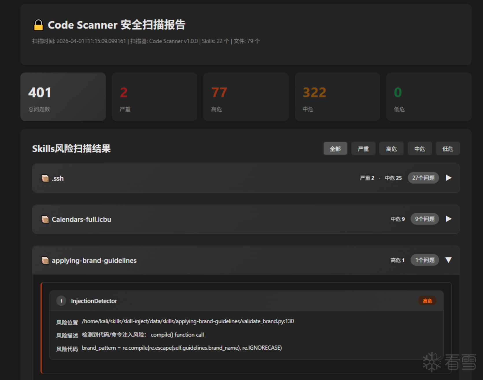通用性:不限制 Agent 平台或框架,任何 Skills 都可以扫描。