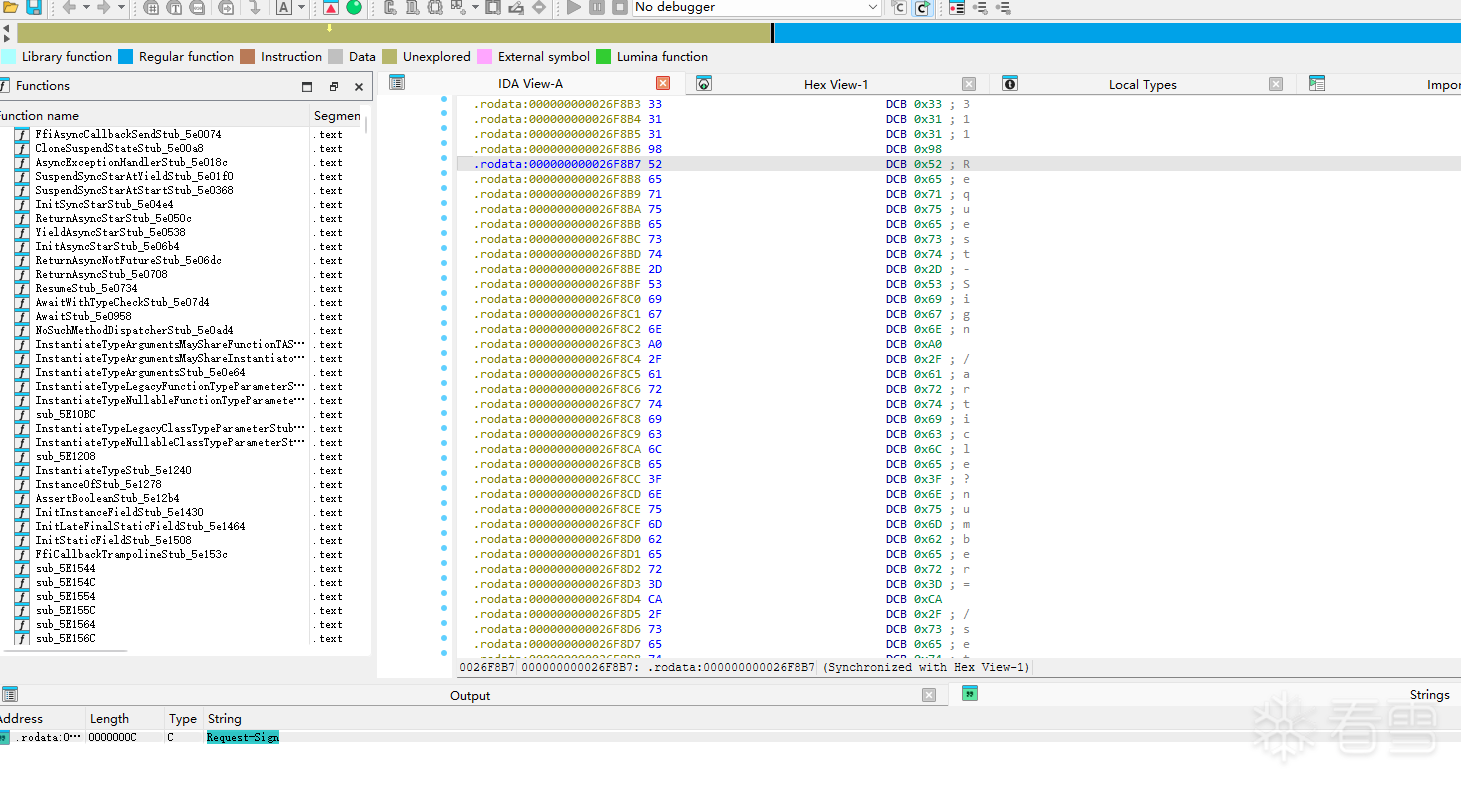- 但是为了体验flutter逆向全流程和熟悉IDA,我还是按网上教程,在IDA中导入了blutter生成的还原字符的脚本