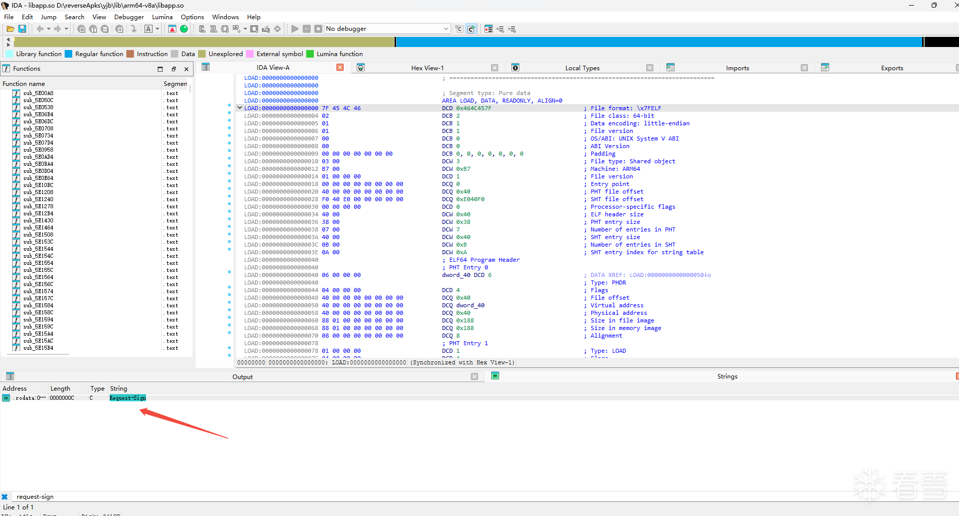- 先在IDA里面搜索一下字符串 request-sign