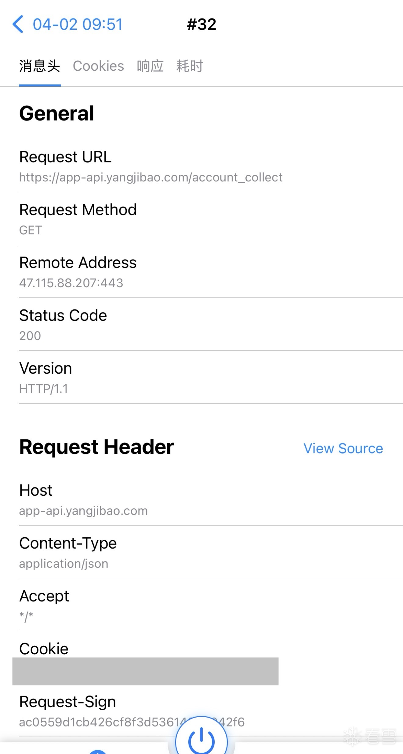 定位到目标接口,头部有一个签名,看长度初步判断是md5