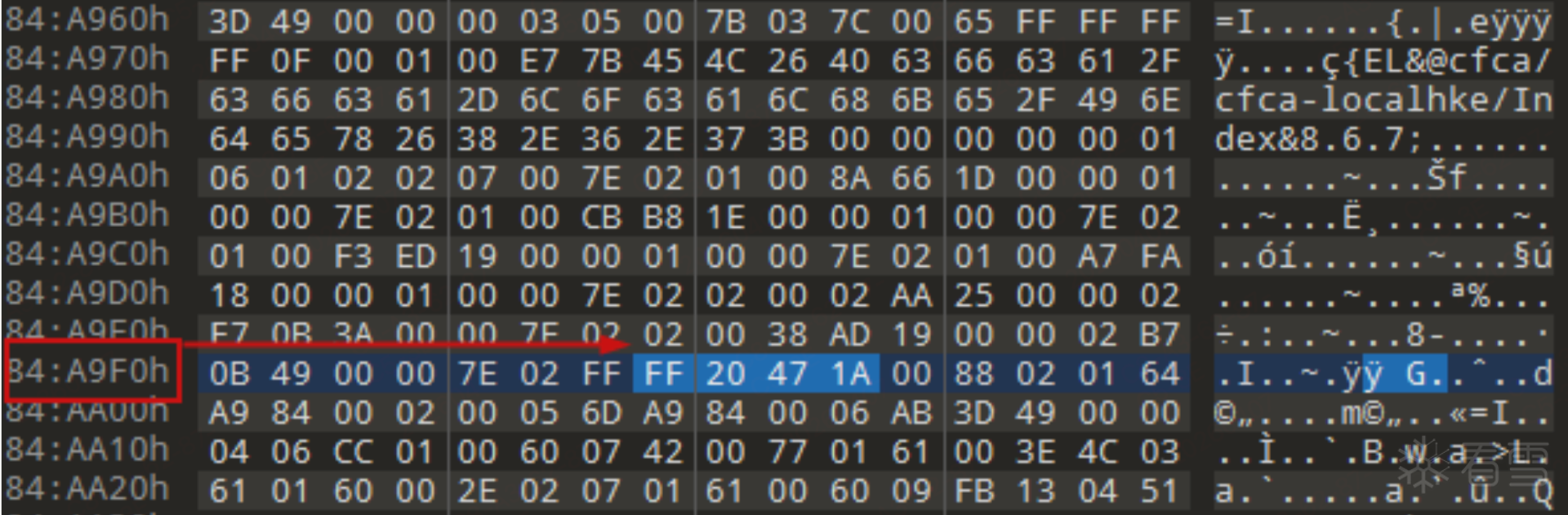提示词:0x84a9f7对应在了十六进制的0xFF 0x20 0x47 0x1A处了 |