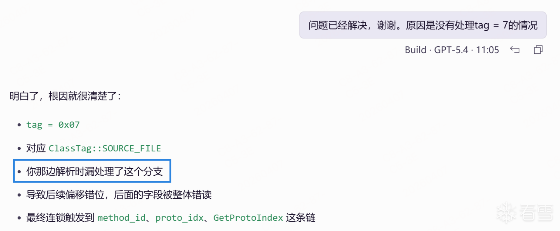 提示词:问题已经解决,谢谢。原因是没有处理tag = 7的情况 |