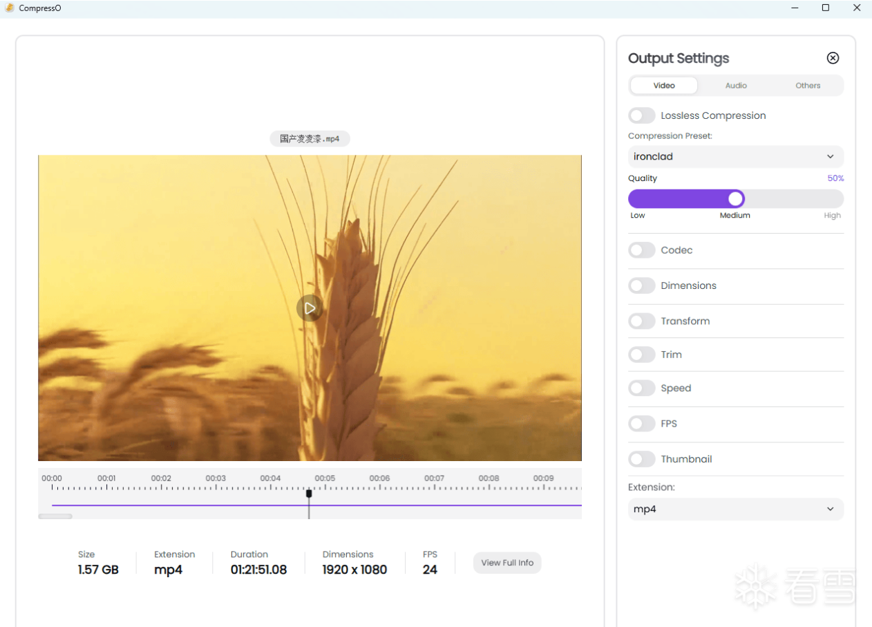 3. 高效压缩:基于 FFmpeg 引擎,压缩率极高(常可缩小至原大小的 1/10),同时较好保留画质。