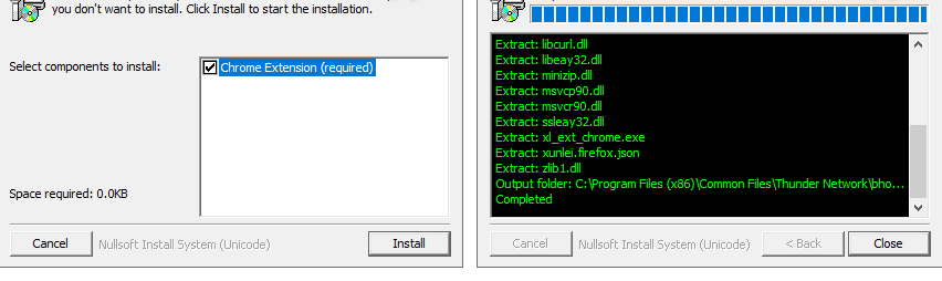 此绿色精简版系自解压程序,解压前请先关闭杀毒软件(卡巴/360/火绒等可能会误报 “!)绿化.cmd” 脚本),双击自解压程序或使用WinRAR/7-Zip手动解压至任意目录,在弹出的“chrome Extension(required)”窗口 点击“Install”-“Close”安装迅雷chrome核心浏览器扩展必需支持组件, 点击桌面快捷方式“迅雷”图标或直接点击Thunder\Program\Thunder.exe 即可运行程序。