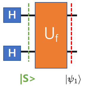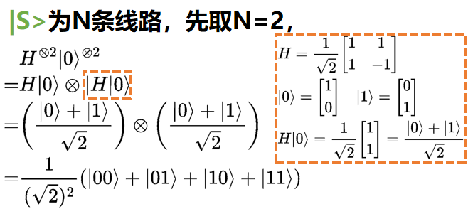 接下来是制备出来2^N搜索空间,每条路都过了H门,这里直接求N条路不方便求,先看N=2是啥情找找规律