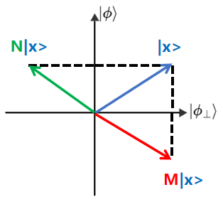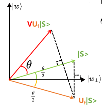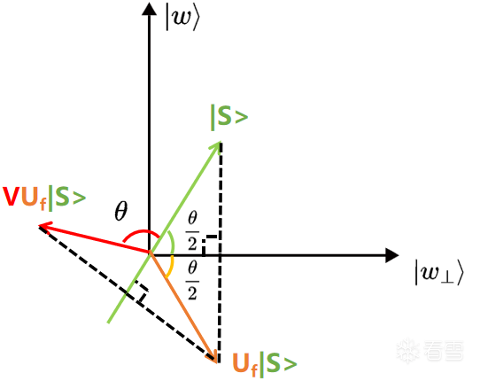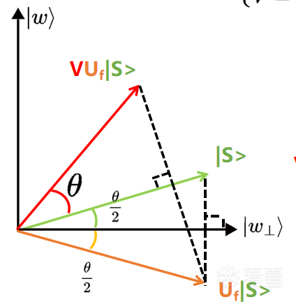 针对于Uf和V的作用,引入一个任意量子态和与其正交的量子态组成的平面,其中任意量子态|x>可表示为: